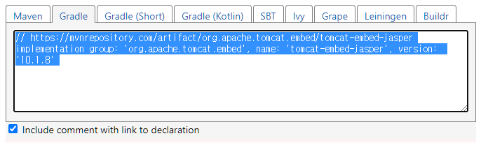 implementation group: 'org.apache.tomcat.embed', name: 'tomcat-embed-jasper'