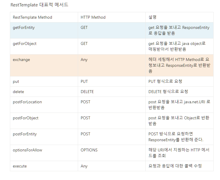 - RestTemplate 는 HttpMessageConverter 를 이용해서 응답메세지를 java object(Class responseType) 로 변환한다.