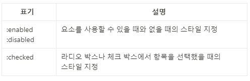 <!DOCTYPE html> <html lang="en"> <head> <meta charset="UTF-8"> <meta http-equiv="X-UA-Compatible" content="IE=edge"> <meta name="viewport" content="width=device-width, initial-scale=1.0"> <title>Document</title> <style> form fieldset{ margin-bottom: 25px; } form legend{ font-size: 15px; font-weight: 600; } input:disabled{ background: #ddd; border: 1px solid #ccc; } /* 체크할때 span 3개 중에서 첫번째 동생에 스타일 적용 */ input:checked+span{ color: blue; } </style> </head> <body> <form> <fieldset> <legend>사용자 정보</legend> <!-- disabled : 이름 못바꿈 --> <label>이름 <input type="text" disabled></label> </fieldset> <fieldset> <legend>신청 과목</legend> <p>이 달에 신청할 과목을 선택하세요</p> <label><input type="radio" name="subject"><span>회화</span></label> <label><input type="radio" name="subject"><span>문법</span></label> <label><input type="radio" name="subject"><span>작문</span></label> </fieldset> </form> </body> </html>- 구조 가상 클래스