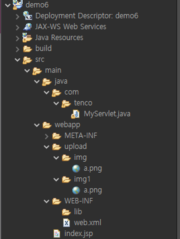 <?xml version="1.0" encoding="UTF-8"?> <web-app xmlns:xsi="http://www.w3.org/2001/XMLSchema-instance" xmlns="http://xmlns.jcp.org/xml/ns/javaee" xsi:schemaLocation="http://xmlns.jcp.org/xml/ns/javaee http://xmlns.jcp.org/xml/ns/javaee/web-app_4_0.xsd" id="WebApp_ID" version="4.0"> <display-name>demo6</display-name> <welcome-file-list> <welcome-file>index.html</welcome-file> <welcome-file>index.jsp</welcome-file> <welcome-file>index.htm</welcome-file> <welcome-file>default.html</welcome-file> <welcome-file>default.jsp</welcome-file> <welcome-file>default.htm</welcome-file> </welcome-file-list> <!-- 서블릿 전체에서 공유할 수 있는 데이터를 선언 --> <context-param> <param-name>imgDir</param-name> <param-value>/upload/img</param-value> </context-param> <context-param> <param-name>testServerIp</param-name> <param-value>127.0.0.1</param-value> </context-param> <context-param> <param-name>realServerIp</param-name> <param-value>88.0.13.1</param-value> </context-param> <servlet> <servlet-name>myServlet</servlet-name> <servlet-class>com.tenco.MyServlet</servlet-class> <!-- 초기 파리미터 설정 하기 --> <init-param> <param-name>adminId</param-name> <param-value>tenco</param-value> </init-param> <init-param> <param-name>adminPw</param-name> <param-value>asd123</param-value> </init-param> </servlet> <!-- URL mapping 하기 --> <servlet-mapping> <servlet-name>myServlet</servlet-name> <url-pattern>/myServlet</url-pattern> </servlet-mapping> </web-app>서블릿 전체에 쓸수 있도록 데이터를 선언하였다.